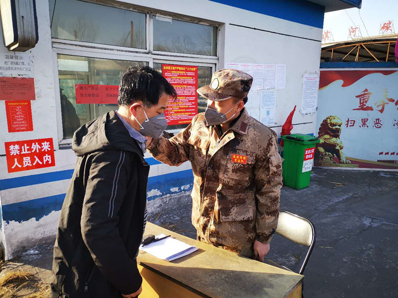 “請靠邊停車,我們需要給車輛消毒,請您下車做詳細(xì)登記并測量體溫?!?1點(diǎn)半不是上下班時(shí)間,雖然偶有人車進(jìn)出,但郗余亮?xí)r刻堅(jiān)守在刺骨的寒風(fēng)中,檢查過往人員和車輛,嚴(yán)格執(zhí)行公司對新冠肺炎疫情防控的各項(xiàng)要求?!耙咔楫?dāng)前,我作為公司員工,又是民兵,有責(zé)任也有義務(wù)沖鋒在前保護(hù)全廠員工和企業(yè)的安全,為了早日戰(zhàn)勝疫情,再苦再累我都能克服?!臂嗔琳f。